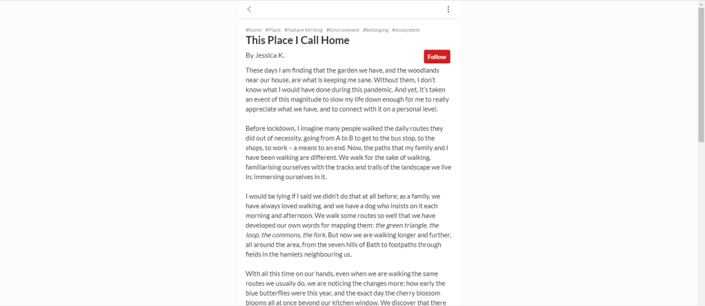 Before lockdown, I imagine many people walked the daily routes they did out of necessity, going from A to B to get to the bus stop, to the shops, to work – a means to an end. Now, the paths that my family and I have been walking are different…